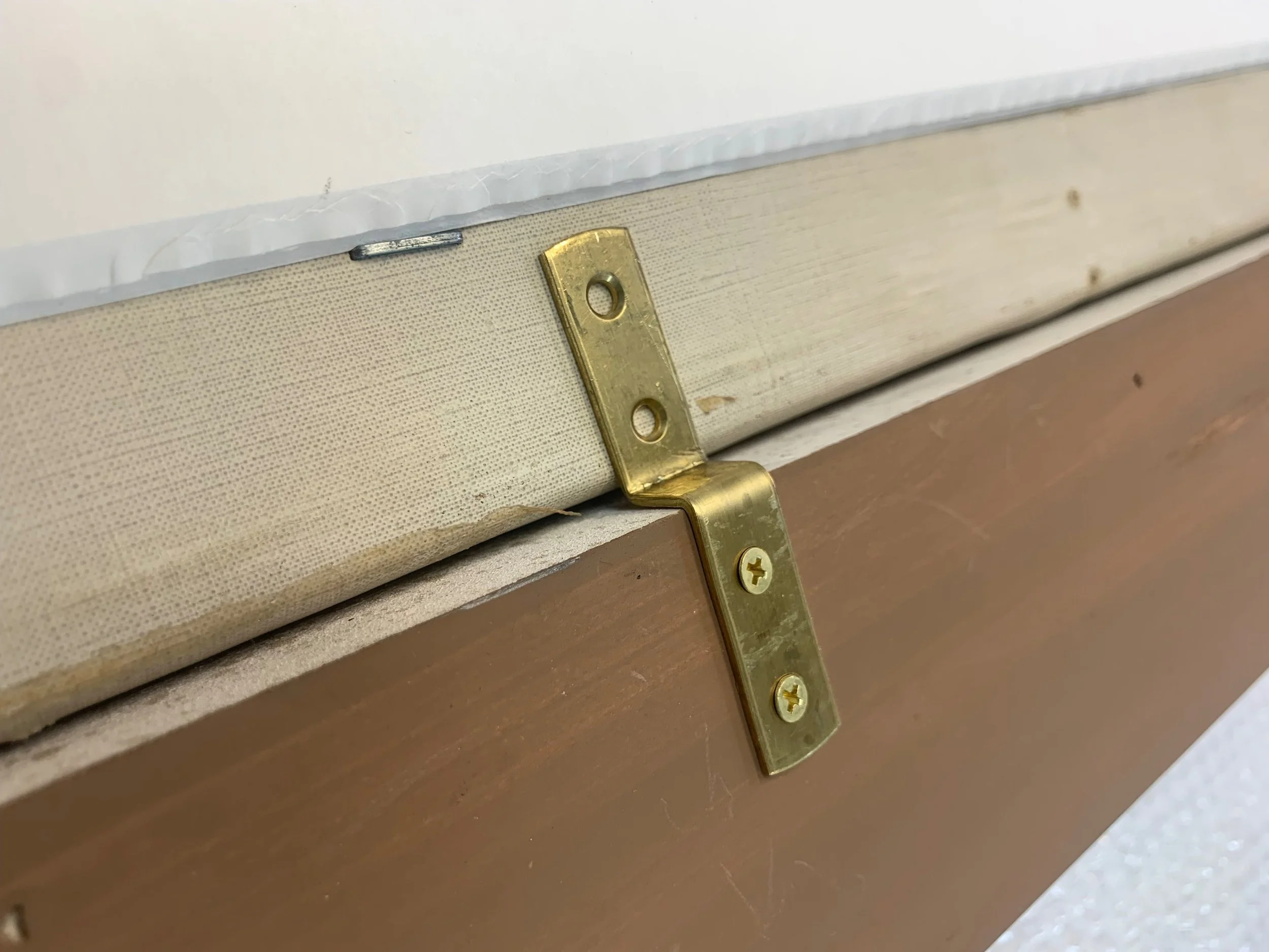 Next, the edge of the frame rabbet is covered in a soft felt that protects the face of the painting from being in direct contact with the wooden frame. The painting is then placed into the frame and held in place by brass mending plates that are shaped to the profile of the piece. These plates are attached to the frame and will cause no structural damage to the painting support.